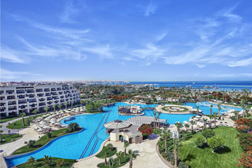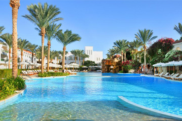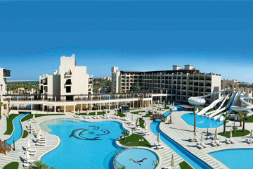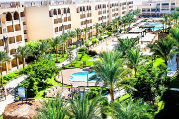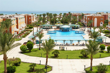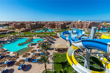 Отель в Хургаде. Построен в марокканском стиле в окружении зеленых кустарников и пальм, красивая ухоженная территория, высокий уровень питания, песчаный пляж с удобным входом. К услугам гостей частный пляж и международный центр дайвинга. В отеле работает новый аквапарк с 8 горками и детской игровой зоной и горками для маленьких детей