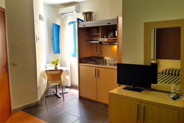 Экономичный вариант размещения, есть номера с кухней (пользование платно), очень симпатичное оформление холла и интерьеров. Недорогой апартотель расположен в историческом месте рядом с великолепным пляжем в центральном районе Джардини Наксос